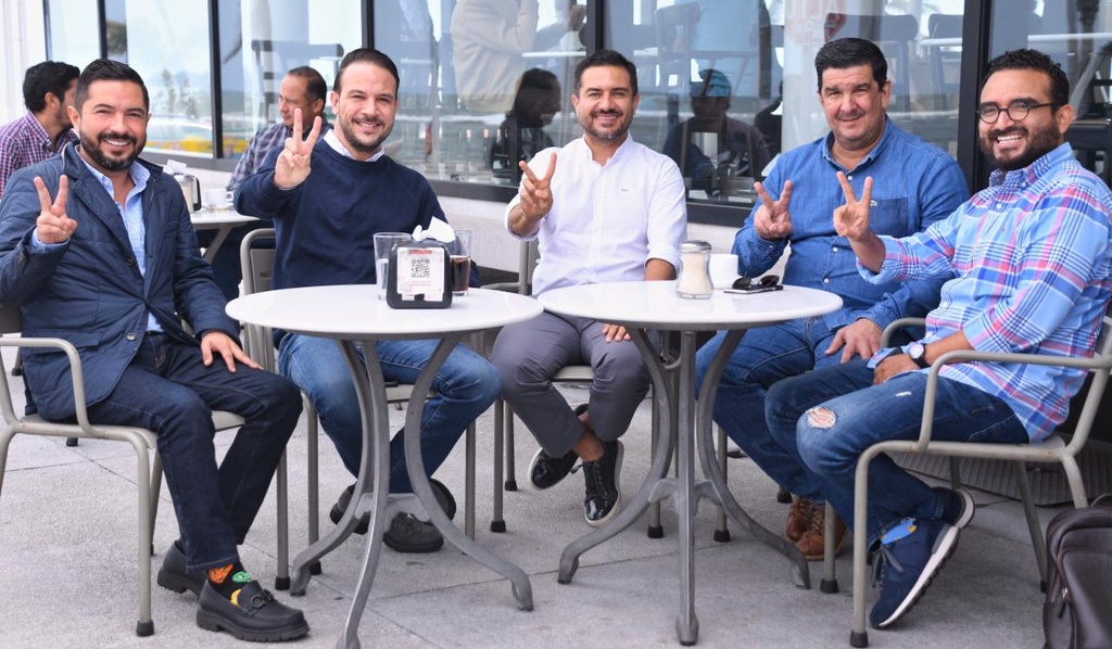Miguel Ángel Yunes Márquez, precandidato del PAN a la presidencia municipal de Veracruz platicó durante un buen rato con Juan Manuel Unanue Abascal, Octavio Ruiz Barroso, Jaime de la Garza y Miguel Hermida Copado, mientras la gente que pasaba por el café de la parroquia los reconocía y los saludaba con afecto pidiéndoles incluso la tradicional selfie y foto del recuerdo.