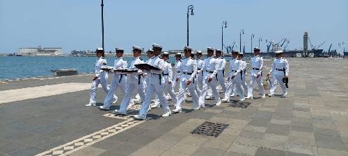 Personal de la Secretaría de Marina y Cadetes de la Heroica Escuela Naval Militar, además de sobrevuelos de helicópteros de la misma Secretaría de Marina, ensayan en la explanada de la macroplaza del malecón como parte de los preparativos para la celebración por el aniversario número 109 de la Heroica Defensa del Puerto de 1914, que será presidida por el presidente Andrés Manuel López Obrador.