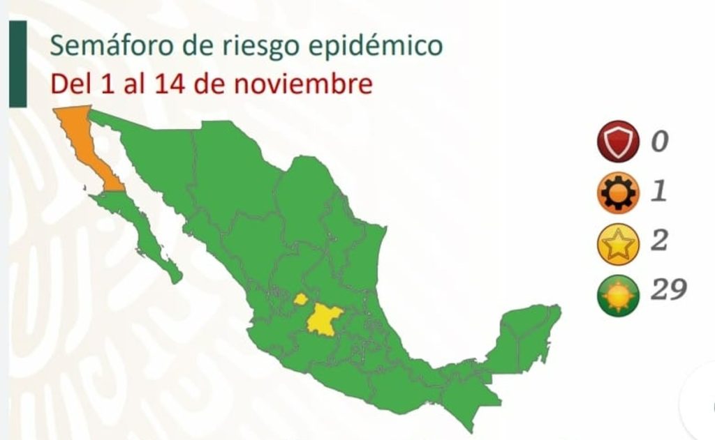 Según lo indicado en la actualización del semáforo Covid-19 en México, a partir del próximo lunes 1 de noviembre, la mayoría de los Estados de la República estarán en color verde.
