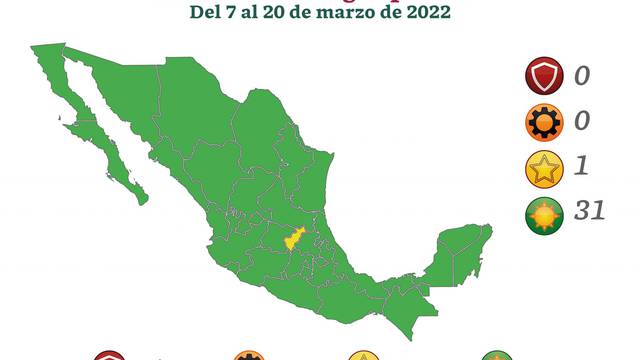 Debido a que en el periodo de revisión actual la mayoría de los Estados, pudieron reducir sus niveles de riesgo por el Covid-19, 31 Estados serán los que estén en el semáforo verde.