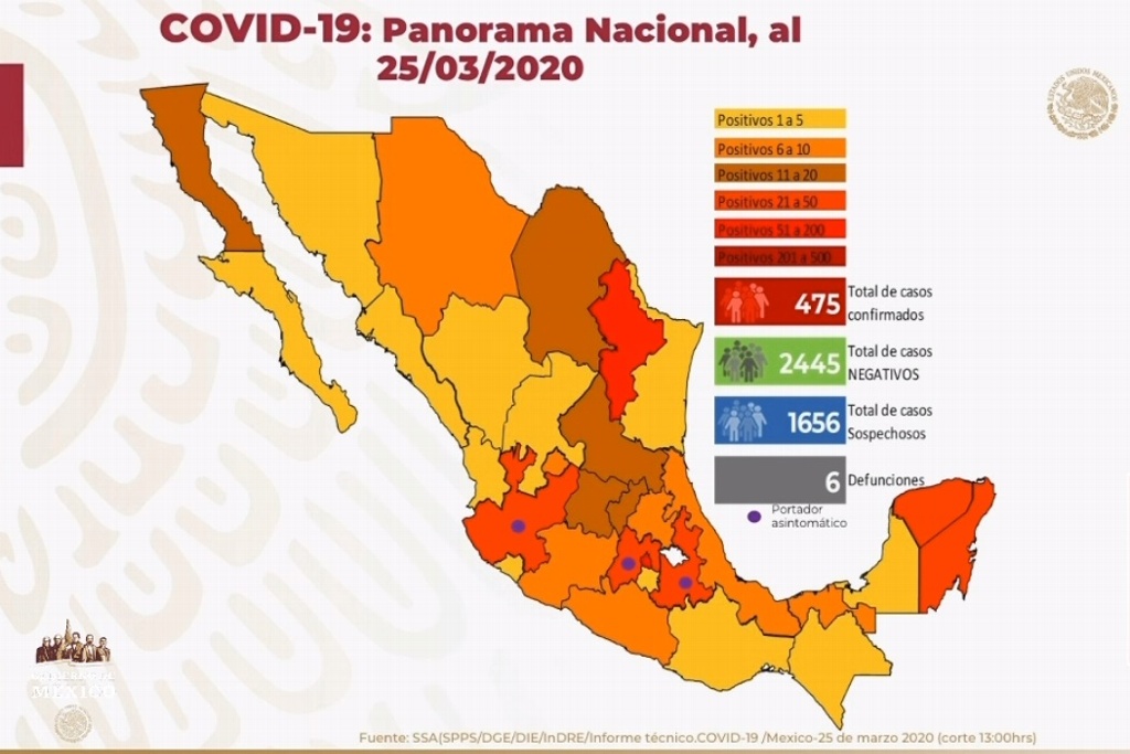 Suman 6 muertos y 475 casos confirmados de Covid-19 en México