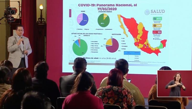 En conferencia de prensa desde Palacio Nacional, el director de Epidemiología de la SS, José Luis Alomía, informó que además de los 93 casos confirmados, son 206 los casos sospechosos y más de 600 los descartados.