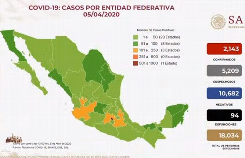 Asimismo, informó que hay 2 mil 143 casos confirmados de coronavirus en el país, así como 5 mil 209 casos sospechosos.