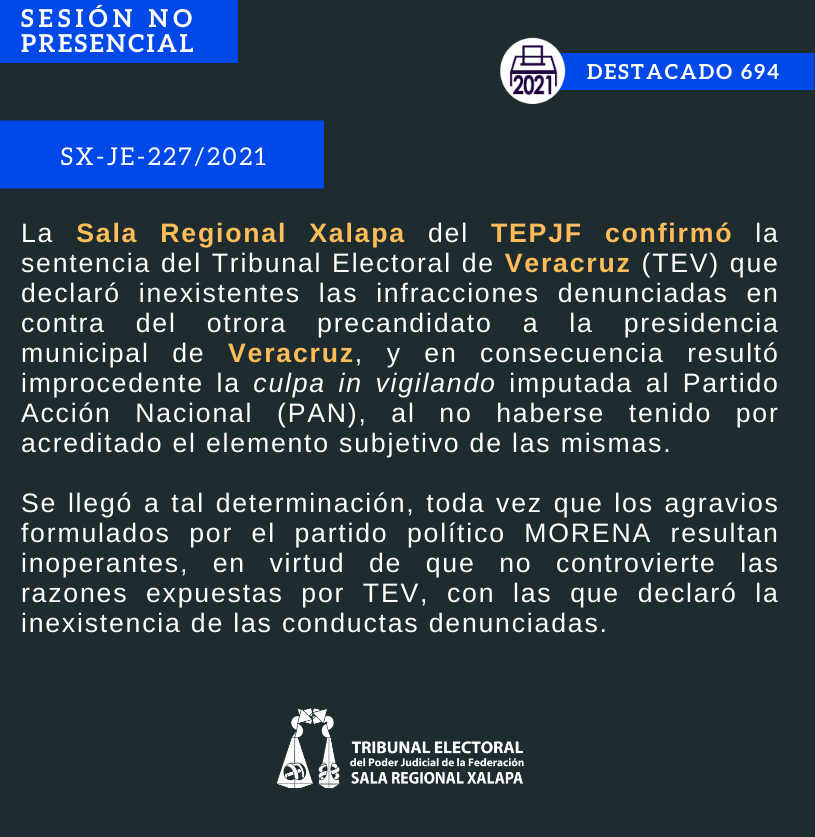 Tras una sesión, la Sala Regional Xalapa del TEPJF emitió una resolución sobre el juicio SX-JE-227/2021 y destaca: