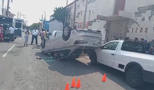 El incidente ocurrió sobre la calle Mario Molina, entre Jiménez y Pino Suárez, cuando el vehículo tipo Virtus, color gris y con placas del estado de Chiapas, impactó el costado trasero de una camioneta MG estacionada. A causa del golpe, el conductor perdió el control, realizó un volantazo y terminó volcado con las llantas hacia arriba.