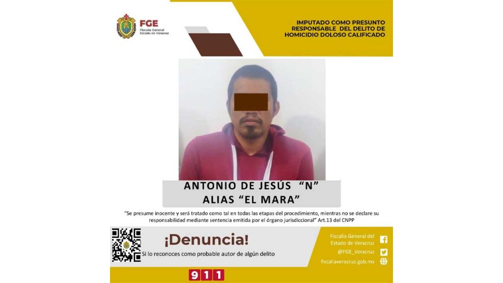 La Fiscalía General del Estado informó que la Fiscalía Regional Coatzacoalcos realizó la imputación en contra de Antonio de Jesús “N” alias “El Mara”.