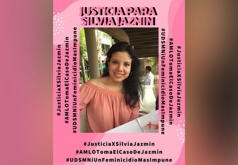 Hace unos días, en redes sociales, inició una campaña para recordar el caso impune de Silvia Jazmín y pedir justicia por ella a casi un año de su asesinato. Ha comenzado a circular una imagen con hashtags donde incluso piden que el presidente ponga atención en el tema: #AMLOTomaElCasoDeJazmin.