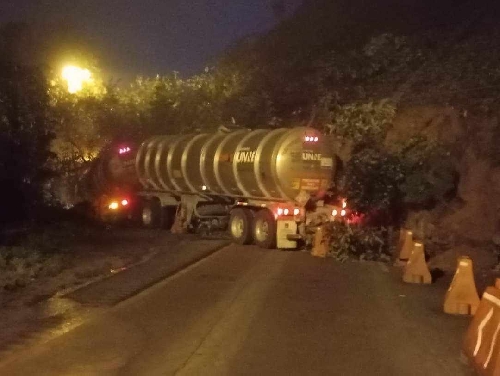 Desde el fin de semana, toneladas de lodo, tierra, piedras y árboles cayeron sobre 150 metros de largo de la pista de peaje, aplastando parcialmente una pipa doble remolque que ya fue retirada con ayuda de una grúa el domingo.