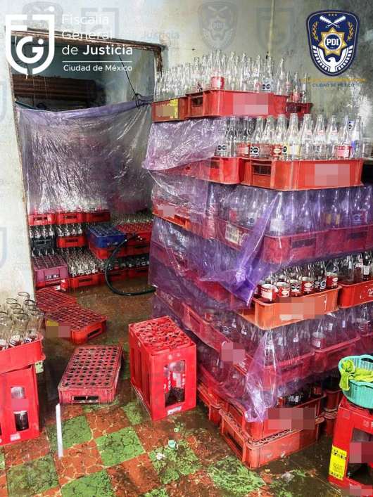 Un inmueble ubicado en Santa Martha Acatitla Norte de la alcaldía Iztapalapa, comerciaba Coca Cola pirata a comercios de comida ambulante en la Zona Centro y Estado de México.