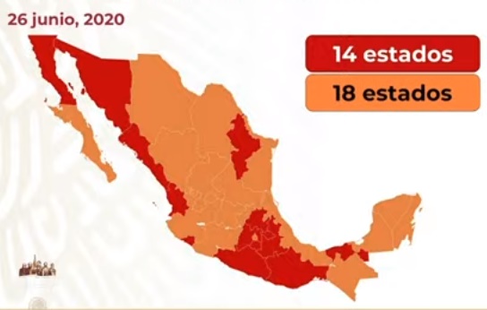 La Secretaría de Salud del gobierno federal informó este viernes que la próxima semana 14 Estados de la República Mexicana continuarán en color rojo en el semáforo de riesgo por Covid-19 y 18 Estados estarán en color naranja, entre los que se encuentra Veracruz. Estos colores de semaforización serán válidos del lunes 29 de junio hasta el domingo 5 de julio.