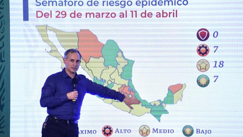 Como ocurre ya desde hace varios periodos de 2 semanas previos, a partir del 29 de marzo y hasta el 11 de abril no habrá ningún Estado en el nivel de riesgo máximo, es decir ningún territorio estatal se colocará en el color rojo.