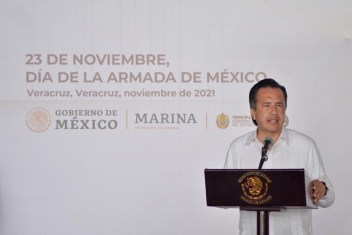 Veracruz, Ver., 23 de noviembre de 2021.- Al conmemorar el Día de la Armada de México, el gobernador Cuitláhuac García Jiménez expresó su agradecimiento y orgullo hacia la institución, que ha desempeñado un papel determinante en las tareas de seguridad encomendadas por el presidente Andrés Manuel López Obrador.