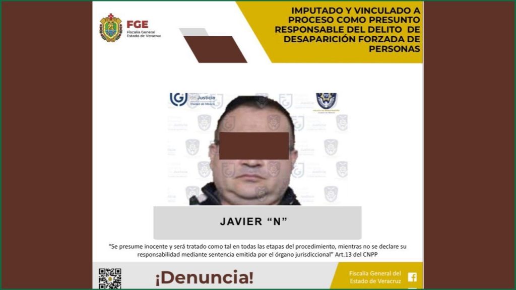 La Fiscalía General del Estado, informó que a través de la Fiscalía Especializada para la Atención de Denuncias por Personas Desaparecidas, realizó imputación y obtuvo vinculación a proceso en contra de Javier “N”, como presunto responsable del delito de desaparición forzada de personas en agravio de la víctima con iniciales D.L.C.