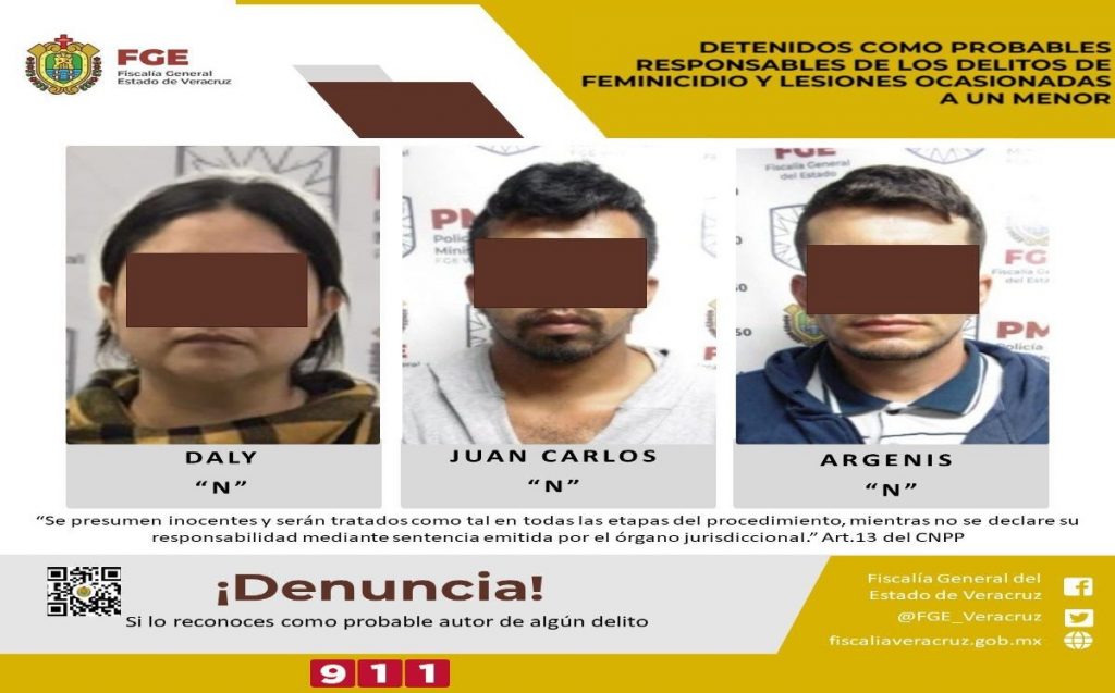 Daly Ariadna “N”, Juan Carlos “N” y Argenis “N”, han sido imputados como probables responsables de los delitos de lesiones al nieto de la víctima y homicidio en agravio de la víctima Elizabeth Meza Rivera.