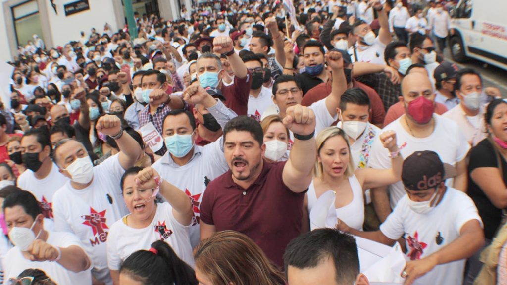 Xalapa, Ver.- Impulsado por los mismos ideales de la 4a. Transformación, Zenyazen Escobar García asistió al mitin político en la Plaza Lerdo de la capital veracruzana a refrendar su apoyo para que el presidente de México, Andrés Manuel López Obrador, concluya su sexenio.